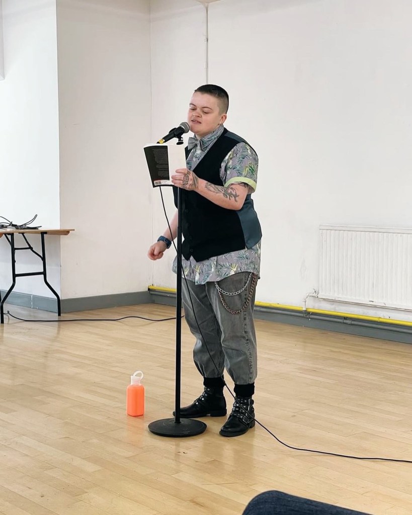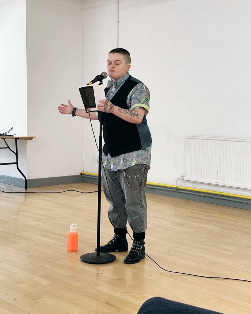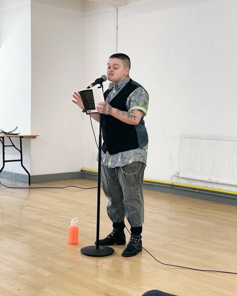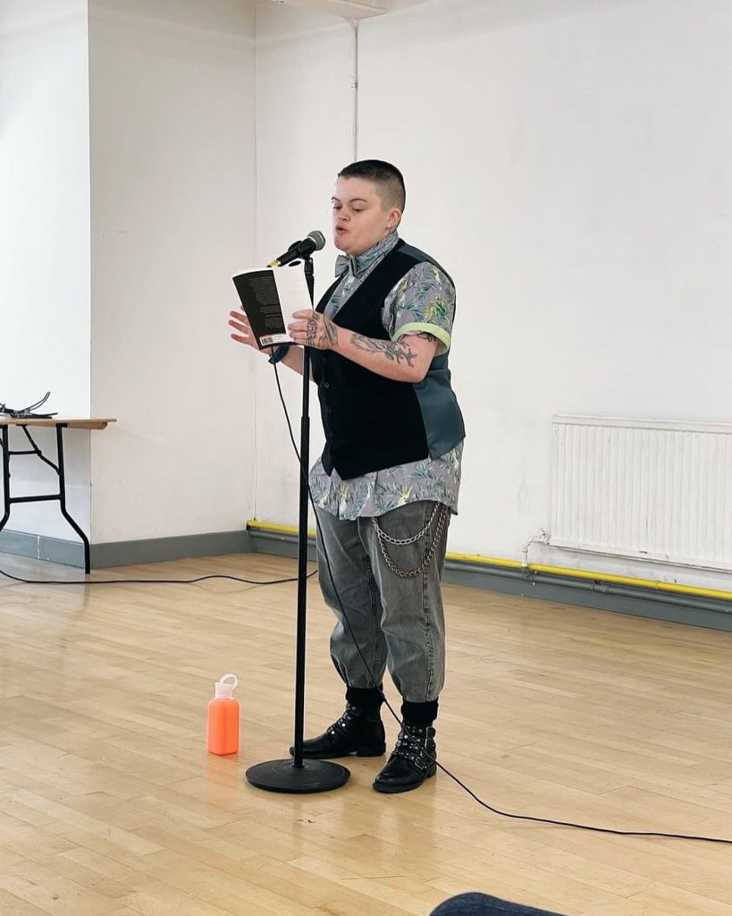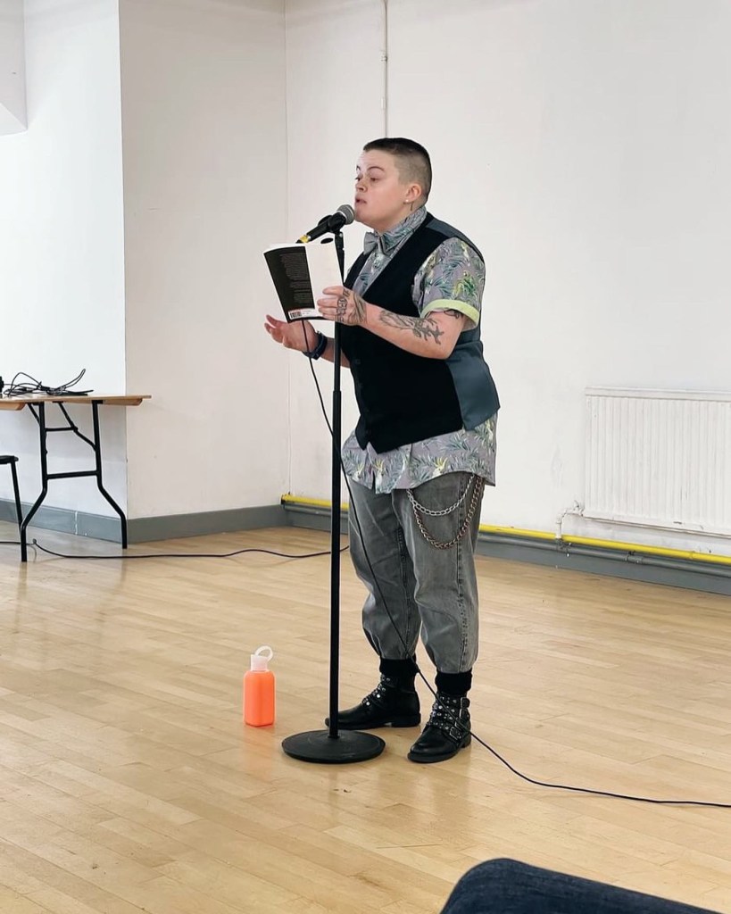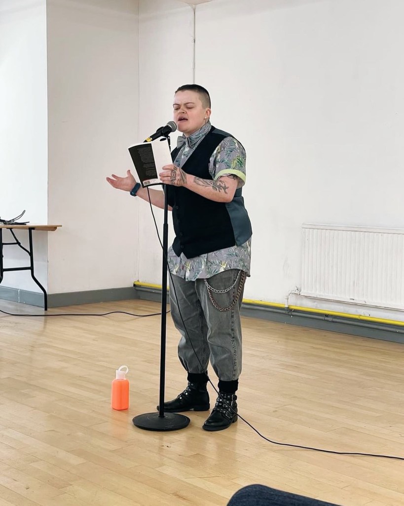 I was very fortunate to have Fleur photograph me while I was speaking (I didn’t realise she was doing this – very discreet!), and these photos are below. All of the photos on this particular website page (www.brixtonnights.com/reading-proud) are copyright Fleur Pierets, 2023. Thank you again Fleur for these images